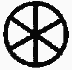 | SUN SIGN 2 : Found in Turkey and believed to represent the sun and the four directions. (See Swastika 1 and 2). Compare the curving lines with the primary lines of Swastika 3, the iron cross. Notice also that without the horizontal line, the symbol resembles the outline of the Yin-Yang. |